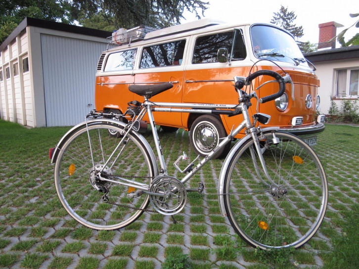 Das Fahrrad auf dem Träger ist mein altes Jugendfahrrad und damit auch schon ein Oldtimer aus ca. dem Jahr 1982.