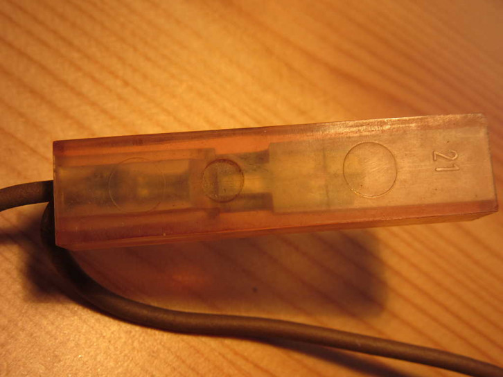 Auf einer der transparenten Kabelhüllen zum Anschluss an die Originalhupe ist neben VW-Zeichen ein Firmzeichen von "Weco" und auf der Rückseite eine "21". Auf einer andern beiliegenden transparenten Kabelhülle ist neben dem VW-Zeichen das HSU Firmenlogo der Firma "Hans Simon in Unkel am Rhein".