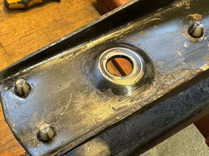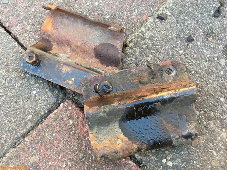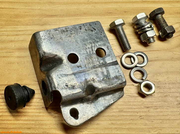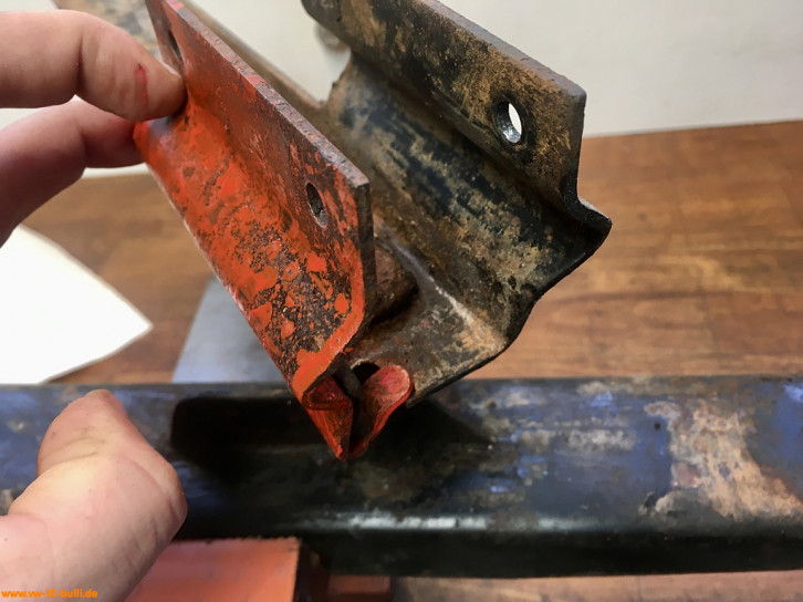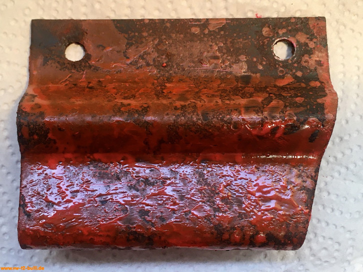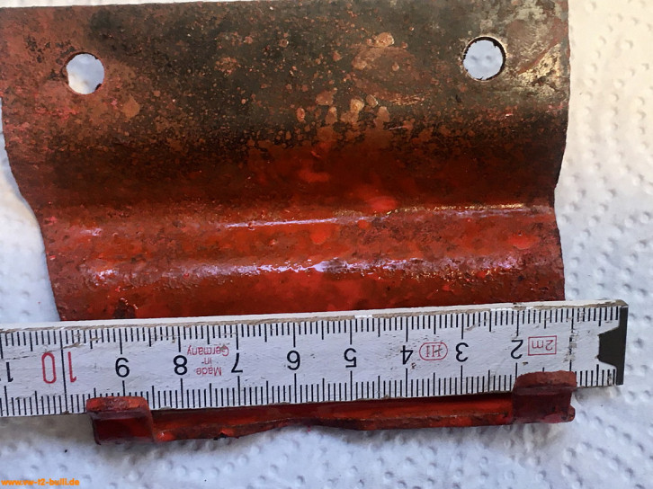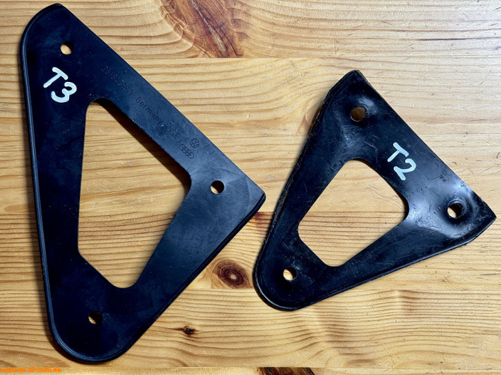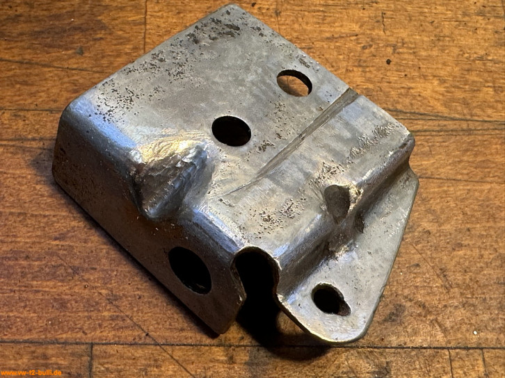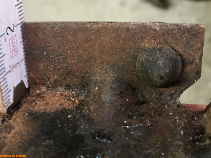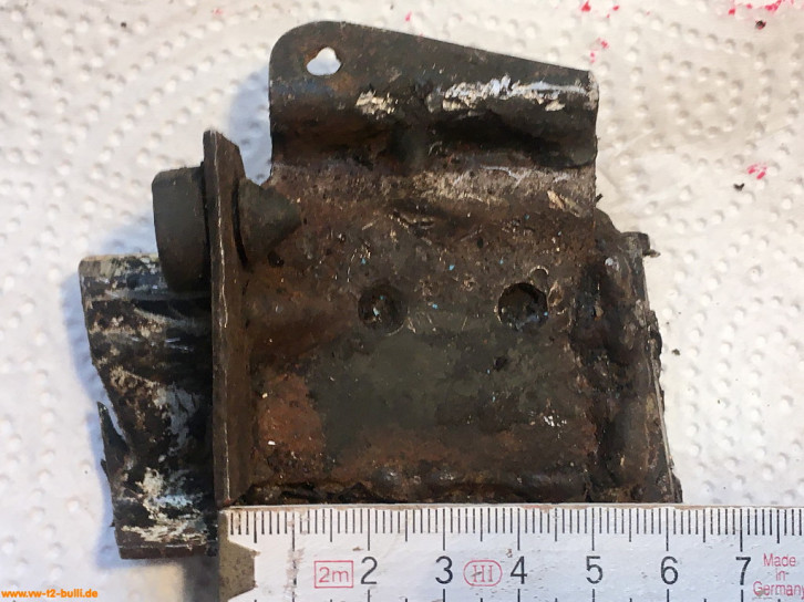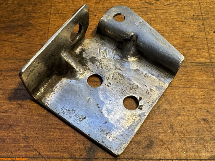 Weil am späten T2 im Längsträger dort innen ein Verstärkungsblech im Weg ist für Schrauben, war meiner wohl vorher einfach festgeschweißt statt angeschraubt - und dann aus dem Träger ausgeschnitten. Ich suche derzeit noch nach einer Lösung mit anderen Anschraubpunkten und verlängertem Bauteil - oder schweiße es acuh einfach an.