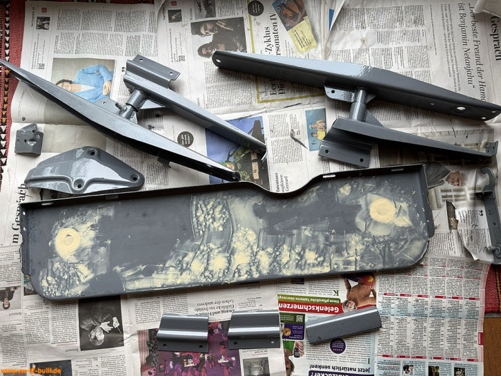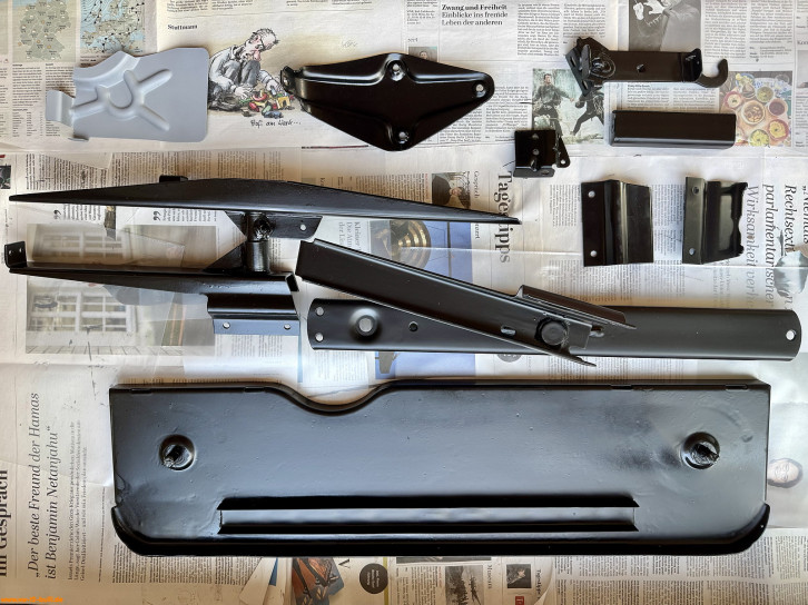 Da meine Liebste seit längerem gerne einen kleinen, eher wackligen Klapptritt vor der Schiebetür platzierte - für mich als Stolperfalle, liebäugelte ich immer mit gemischter Meinung zu dieser "Automatische Trittstufe" M530. Übersieht man die Trittstufe beim Reingreifen in den Bulli, schmerzt es schnell einmal am Schienbein. Und kein einfaches nur mal eben Anschrauben: für den Mitnehmer an der Schiebetür muss diese innen aufgeschnitten werden und eine Verstärkung eingeschweißt werden. 2023 habe ich dann ein gebrauchtes, unvollständiges Teile-Set des M530 bekommen. 2024 konnte ich alle Teile vervollstängen - inklusive der sehr seltenen NOS Verstärkung in der Schiebetür. Hier erste Bilder... meinem Winterprojekt 2024/2025.