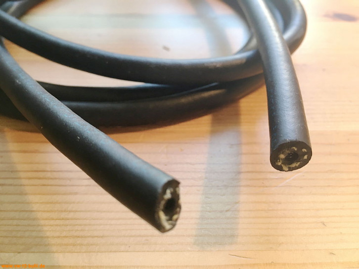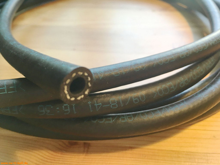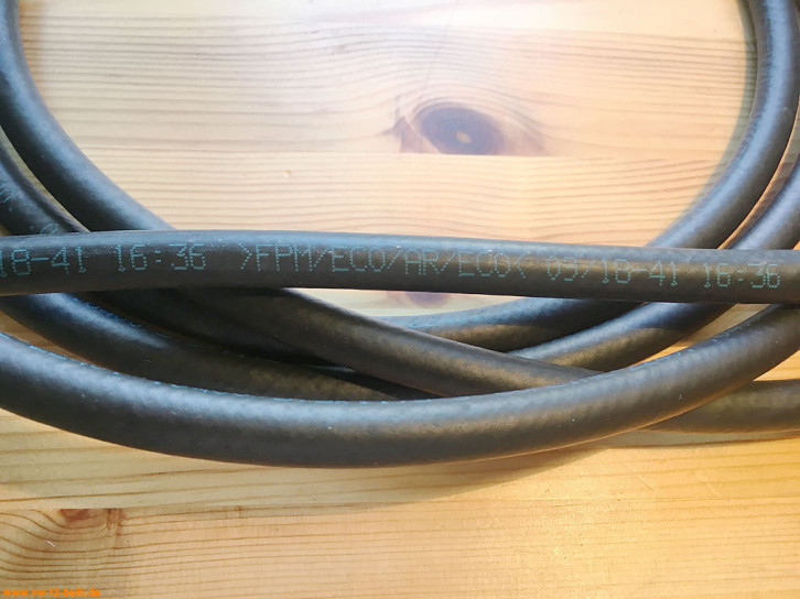 Ein weiteres Problem für unsere alten luftgekühlten Motoren gegenüber wassergekühlten ist die größere Hitze auch im Umfeld der Benzinleitungen. Manche einfacher Kraftstoffschlauch ist dafür nicht ausgelegt - sondern eher für gut gekühlte moderne Autos und bis max 70 C. Hohe Temperaturen halten Schläuche mit FKM bzw. FPM aus. Für Benzinschläuche mit Innengeflecht wird aber dann aussen noch ECO verwendet. Dieses hat Temperaturbereich immerhin noch bis ca. +120 C.