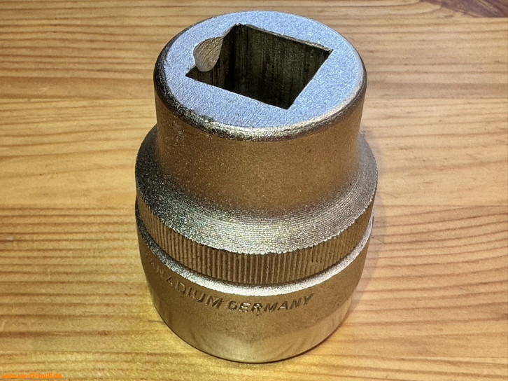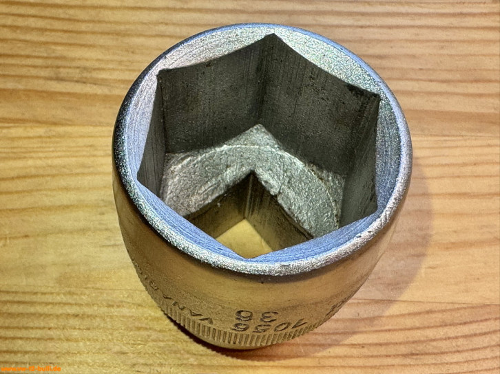 Dieser 36 mm 3/4" Einsatz ist Teil des 4-teiligen Sets 2510 für Schwungscheibe und Hinterachse bei Typ 1, 2 und 3. So für die Hohlschraube des Schwungrades, für Hinterachsmuttern und für die Spezialmutter für das Gebläserad bei alter Motor-Ausführung von Typ 1 und 2.