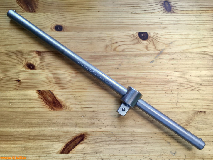 Diese 20" bzw. 500 mm lange und 20 mm starke Drehstange nach DIN 3122 für Schiebestück 1015-1 und anderes ist Teil des 4-teiligen Sets 2510 für Schwungscheibe und Hinterachse bei Typ 1, 2 und 3.