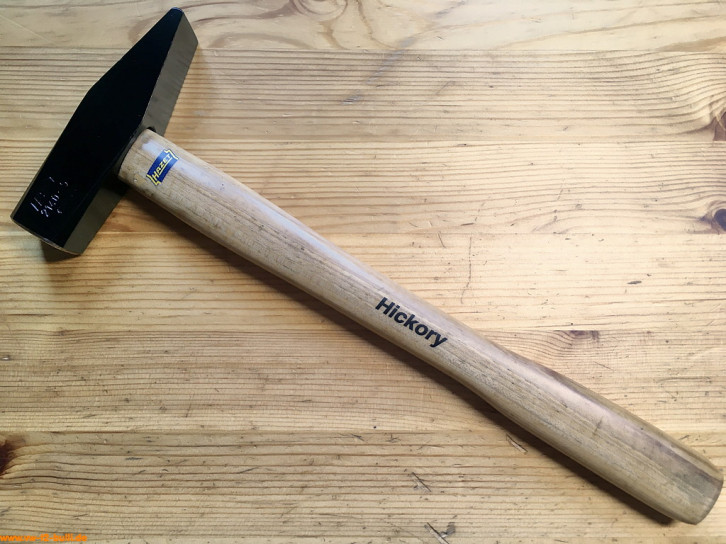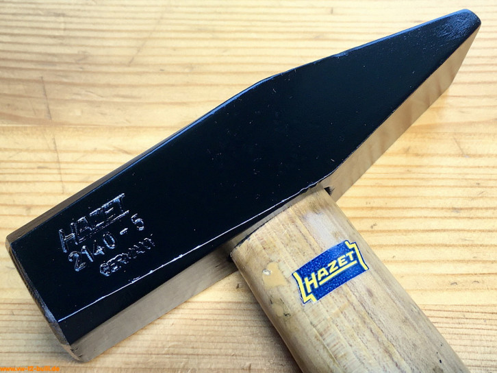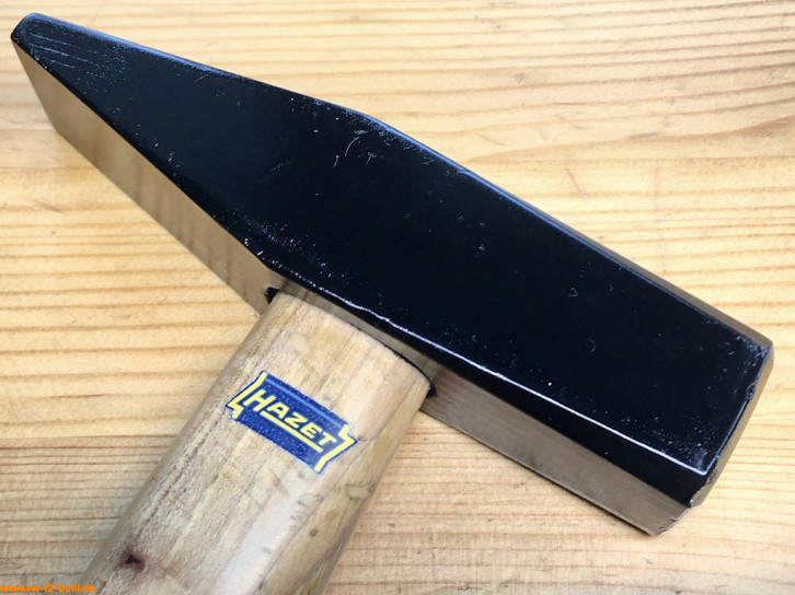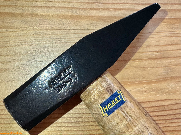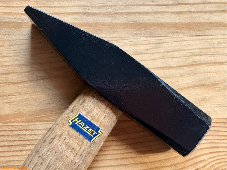 Dieser 315 mm lange und 300 g schwere Schlosserhammer mit Holzgriff aus Hickory (sehr hartes, belastbares und haltbares Holz aus Walnussgewächs) war Teil von HAZET Werkzeugschränken.