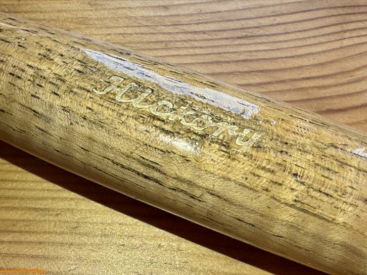 Zwar gab es schon früh ab 1949 in Sortimenten auch einen 300 g Schlosserhammer oder als "120" 1938 ein 400 g Hammer, aber sonst nicht einzeln von Hazet. Die hier gezeigte Version gab es ab ca. 1958 bis vor 1985. Um 1985 gab es oben um den Stiel eine Stielschutzhülse, um 1992 wieder zu verschwinden und schwarz aufgedruckte Bezeichnungen auf dem Stiel, um 2000 wieder geändert mit "HICKORY" in Großschreibung Schriftzug ohne Serifen und später als "2140-50" um 2020 zweifarbigen look in blau ("BluGuard") und schwarz. Diese Version ist nach 1965 wegen der Großschreibung der Marke und möglicherweise vor 1985.