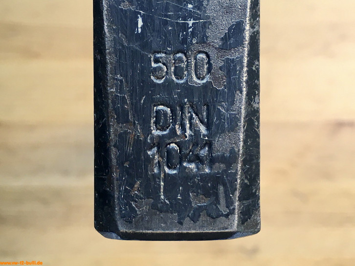 Dieser 400 mm lange Hebeleisen diente unter anderem zum Abziehen der Staubkappen an der Vorderachse. Aber auch zum Lösen festgerosteter Teile, Ein- und Austreiben von Lagern und Lagerschalen, Ein- und Ausbau der Federn, Bolzen, Zahnrädern. Es gehörte zur HAZET Werkstattausrüstung für luftgekühlte VWs.