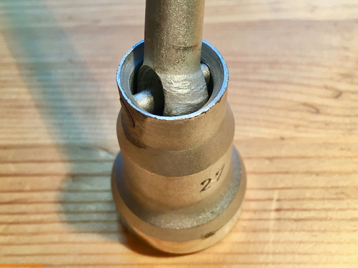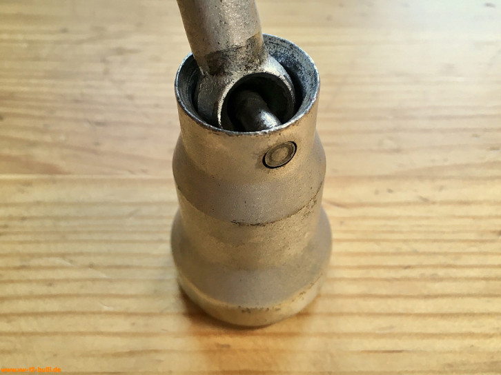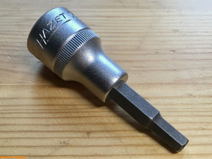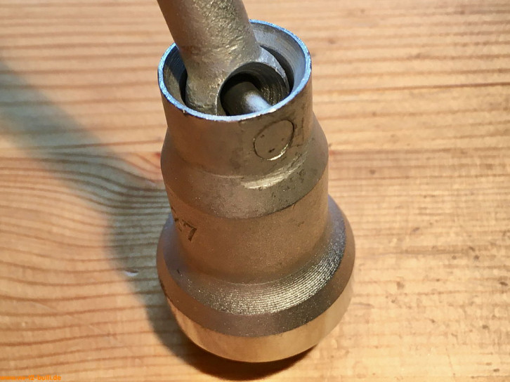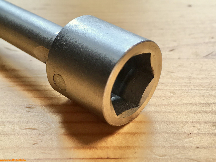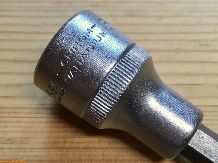 Dieser 1/2" Einsatz für lnnensechskantschrauben wurde für die Antriebs-/Gelenkwellen früher T2 Bullis zeitweise genutzt, bevor VW um 1979 auf belastbarere Innenvielzahnschrauben (XZN) auch rückwirkend umstieg (siehe HAZET 990 8Lg).