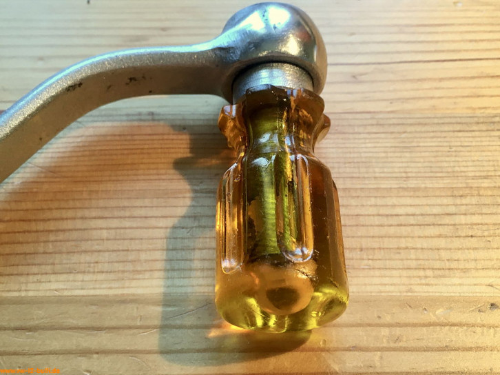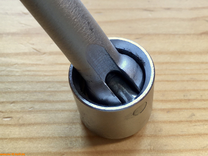 Dieser 150 mm lange Steckschlüssel diente bei Typ 4 bzw. beim Modell 411 mit Rechtslenkung zum Einstellen des Axialspiels der Lenkspindel. Seltenes Werkzeug, das ich eher wohl nie selbst brauchen werde.