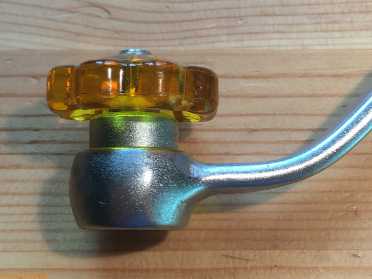 Dieses Flügelrad aus extradickem Blech kann von hinten auf die Flügelmutter des Kupplungszuges aufgesteckt werden zur einfacheren Drehung der schlecht zugänglichen Flügelmutter. Es hat einen 14mm Innenzwölfkant für Sechskantmuttern und einen Schlitz für die Kupplungsflügelmutter.