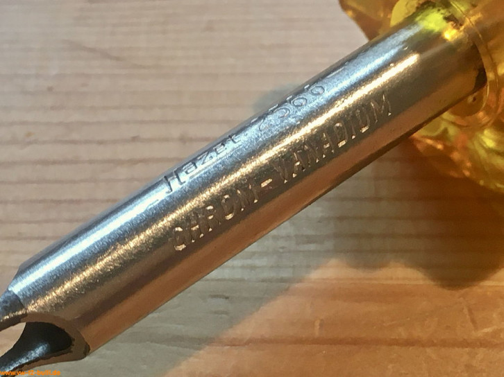 Aufschriften sind "HAZET 2580 GERMANY" und "CHROM-VANADIUM". Auf dem Griff gibt es dagegen keine Aufschrift mehr.