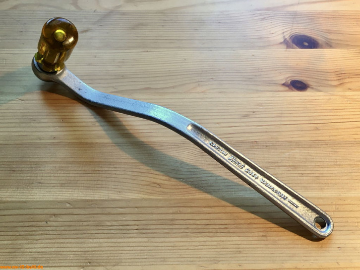 Dieser 10 mm Spezialschlüssel mit Gesamtlänge von 285 mm diente den Befestigungsmuttern am Ansaugrohr.