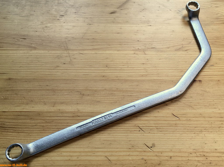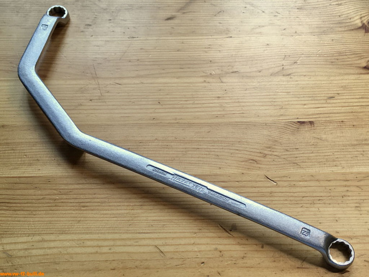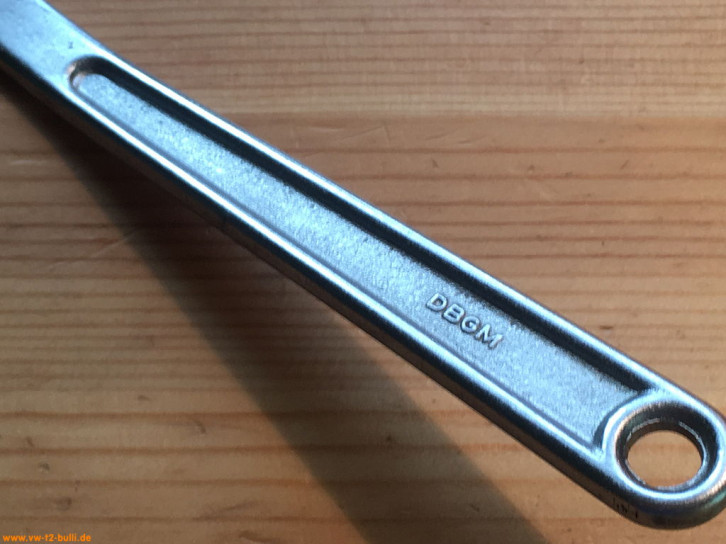 Der gebogene 330 mm lange Spezialschlüssel mit 13 mm Schlüsseln diente für Befestigungsschrauben des Deckels am Achsantrieb und des Lagerdeckels am Achsrohr (Typ 1, 2, 3, 4), ferner für Befestigungsschrauben des Auspufftopfes am Zylinderkopf von oben nach Abnehmen des Motorabdeckbleches (Typ 1, 2, 3).