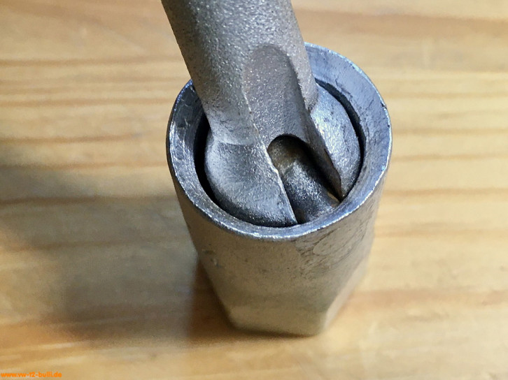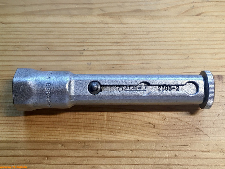 Auch heute noch recht vorteilhaft, da durch die Verblechung ein langer Weg zur Zündkerze liegt und man diese nicht auf dem Weg zum Kerzenloch verlieren sollte. Der 3/8" Antrieb für eine Ratsche beschleunigt die Arbeit.
