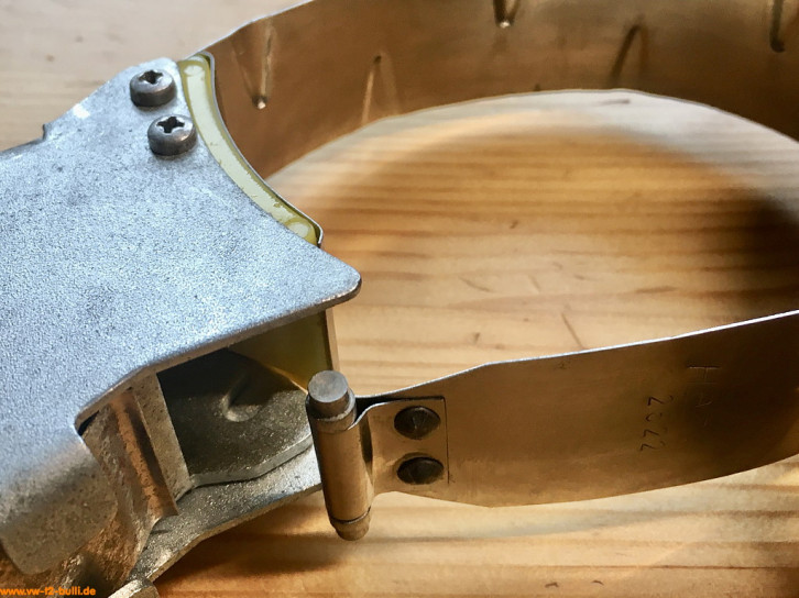 Dieses 150 mm Kolbenringspannband für ca. 85,5 mm Kolbendurchbmesser bei 1600 ccm dient dem Zusammendrücken der Kolbenringe beim Aufsetzen der Zylinder. Es entspricht dem Volkswagen-Sonderwerkzeug "VW 123c".