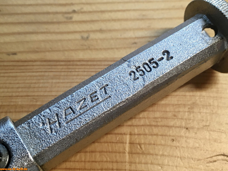 Aufschriften sind "Hazet 2505" und klein "GERMANY" und "DGBM" für "Deutsches Bundes-Gebrauchsmuster".