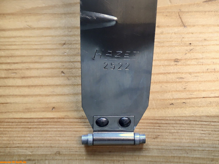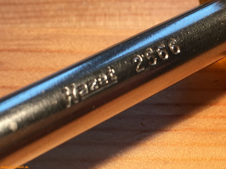 Aufschrift ist "CHROM HAZET 2569 VANADIUM DBGM" letzteres für Deutsches Bundes-Gebrauchsmuster und auf der Rückseite "17" und "CHROM HAZET 2569 VANADIUM GERMANY".