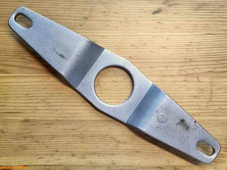 Diese 225 mm lange und 5 mm dicke Führungsplatte ist Teil des 4-teiligen Sets 2510 für Schwungscheibe und Hinterachse bei Typ 1, 2 und 3. So für die Hohlschraube des Schwungrades, für Hinterachsmuttern und für die Spezialmutter für das Gebläserad bei alter Motor-Ausführung von Typ 1 und 2.