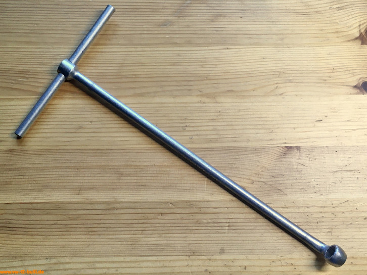Dieses 150 mm lange T-Griff-Schlüssel mit 10 mm Schlüsselweite wurde genutzt für die Ölsiebbefestigungsschrauben von Typ 1, 2 und 3 Motoren.