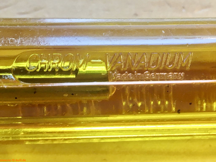 Dieser Schraubendreher DIN 5262 für Kreuzschlitzschrauben (Phillips Recess) mit runder Klinge und Transparentgriff in gelb ist isoliert bis 10000V und gehörte zur HAZET Werkstattausrüstung für luftgekühlte VW und auch andere Fahrzeuge. Die Länge vor dem Griff ist 150 mm, Klingenlänge bis in den Griff 190 mm, Gesamtlänge 240 mm, er hat einen Sechskant für besonders kräftige Betätigung und die Spitze ist für DIN 5262 - Größe 3 (USA 12-16).