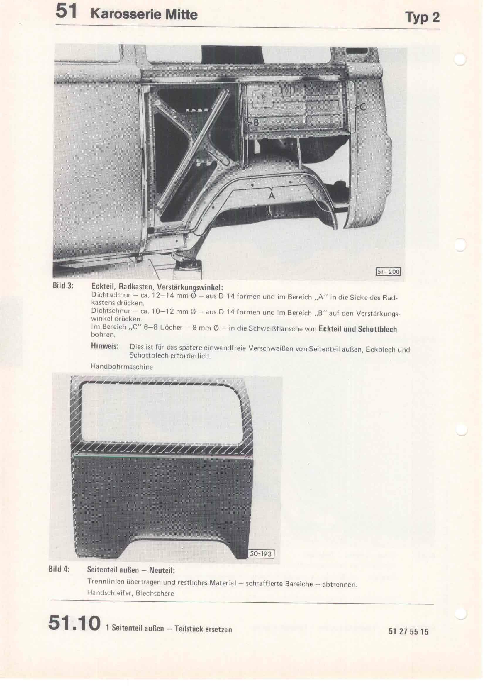 Karosserie Reparatur-Leitfaden Typ 2 April 1975, Seite 51.10
