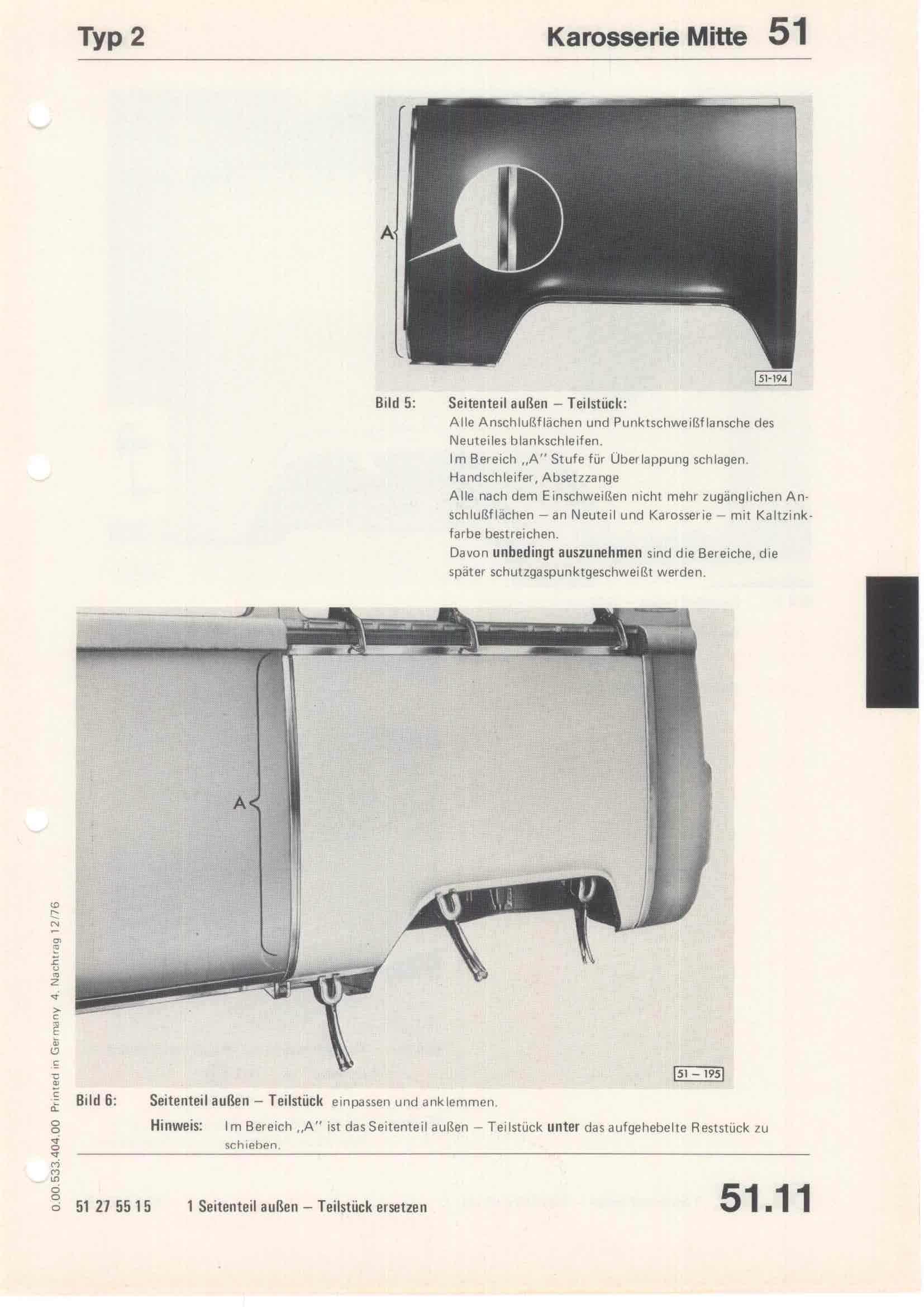 Karosserie Reparatur-Leitfaden Typ 2 April 1975, Seite 51.11