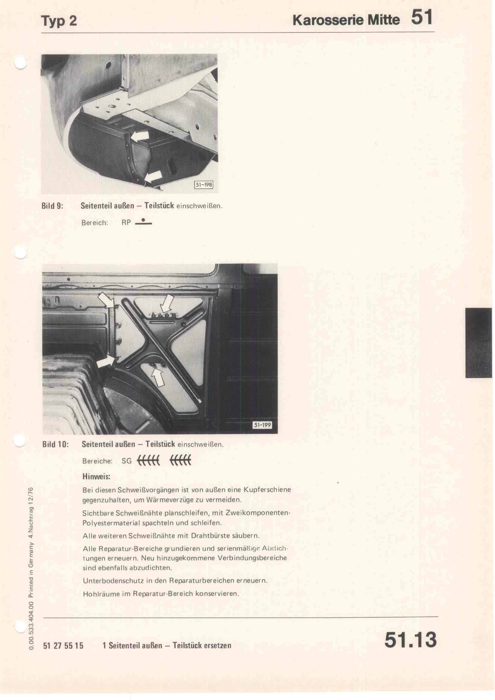 Karosserie Reparatur-Leitfaden Typ 2 April 1975, Seite 51.13