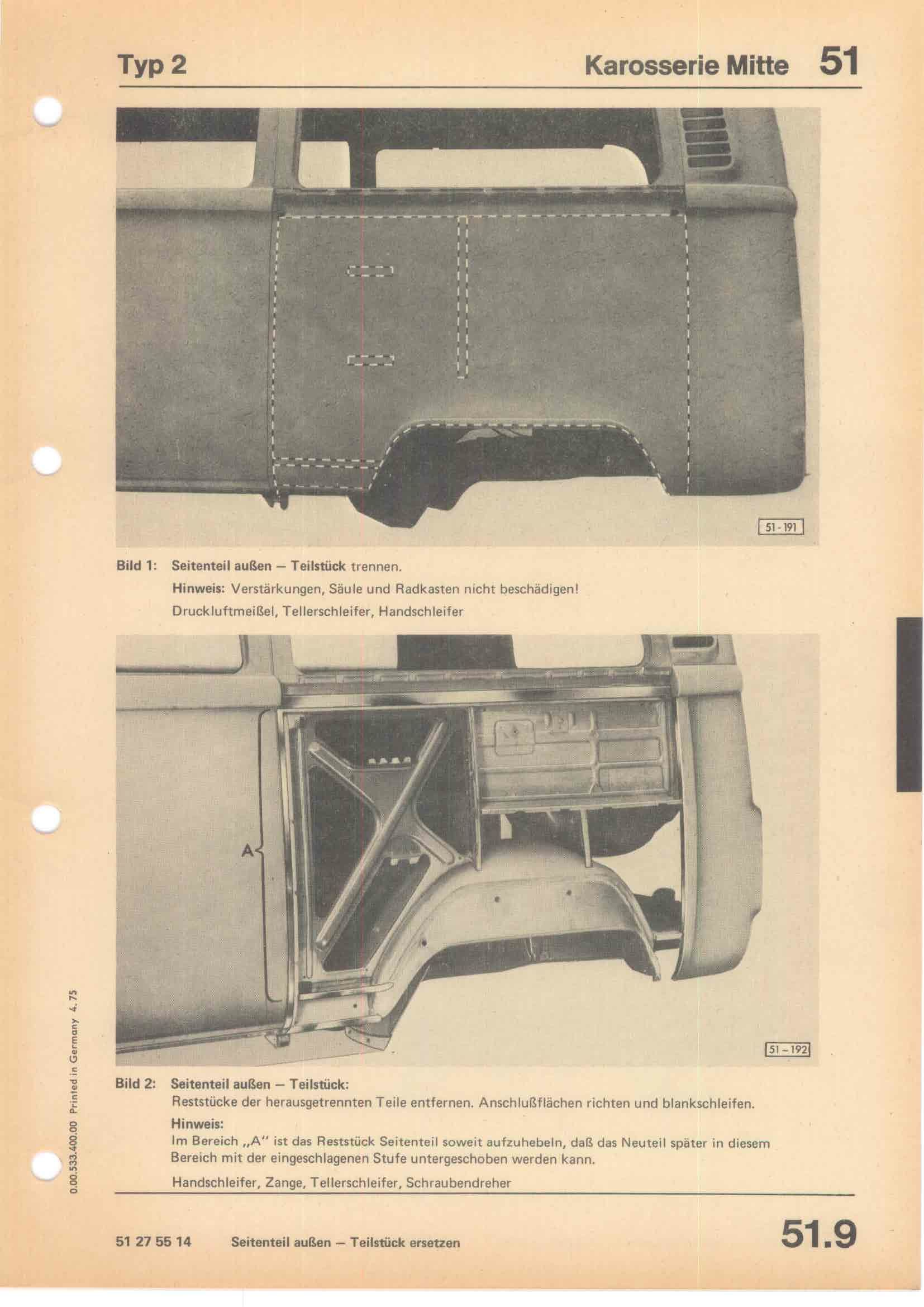 Karosserie Reparatur-Leitfaden Typ 2 April 1975, Seite 51.9 (4/75)