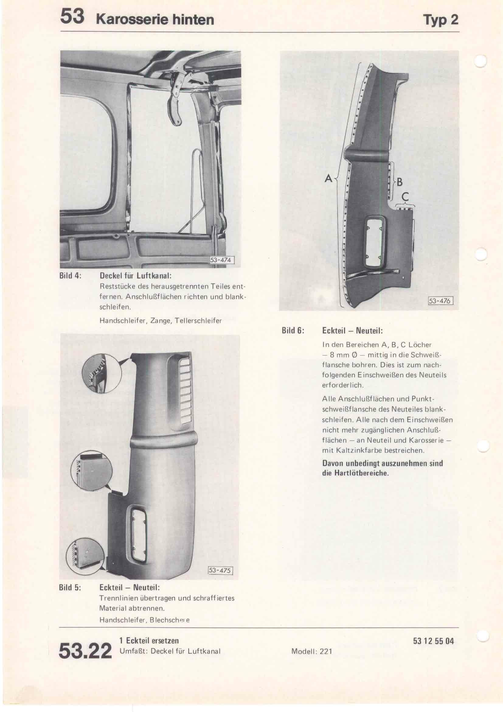 Karosserie Reparatur-Leitfaden Typ 2 April 1975, Seite 53.22