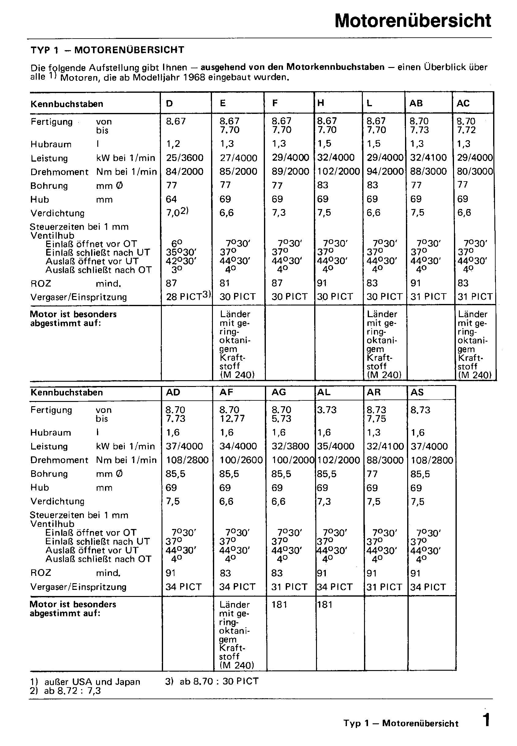 Reparaturleitfaden Typ 1, Typ 2 bis 6.79 - Instandhaltung genau genommen.