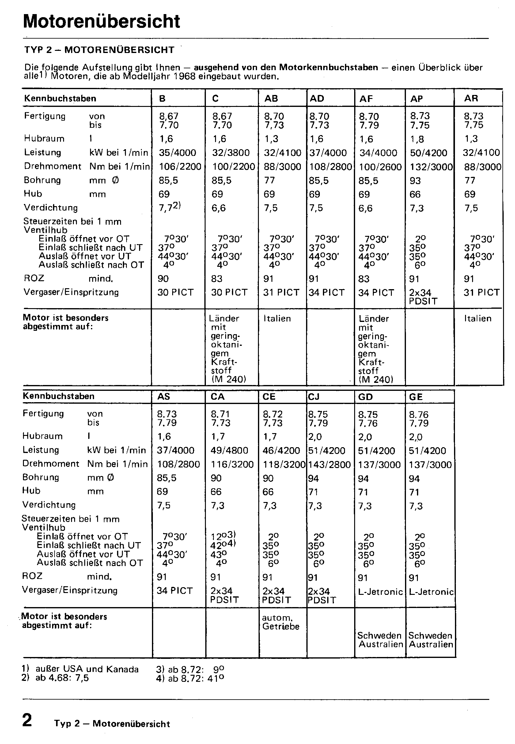 Motorenübersicht Typ 2