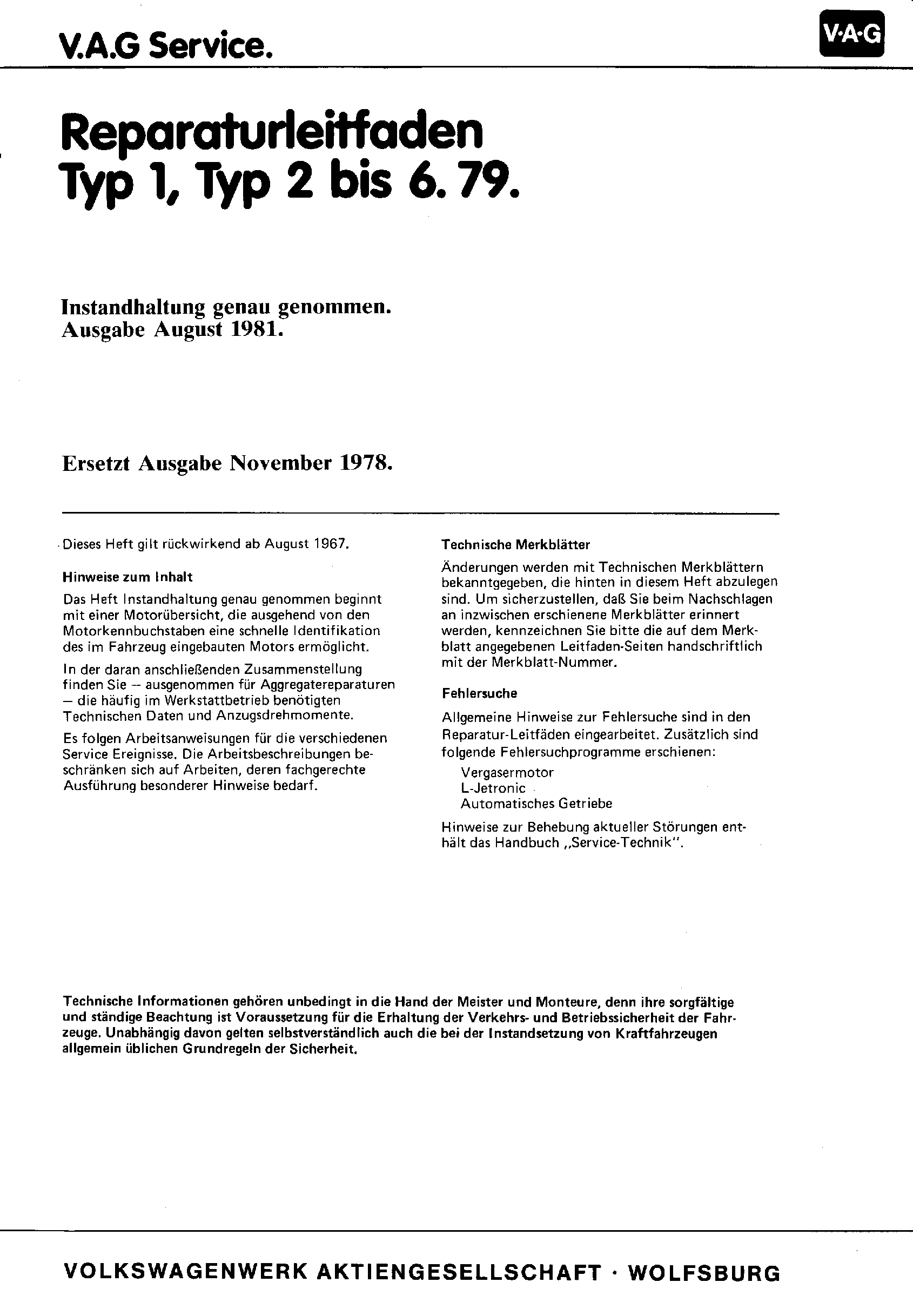 Reparaturleitfaden Typ 1, Typ 2 bis 6.79 - Instandhaltung genau genommen.