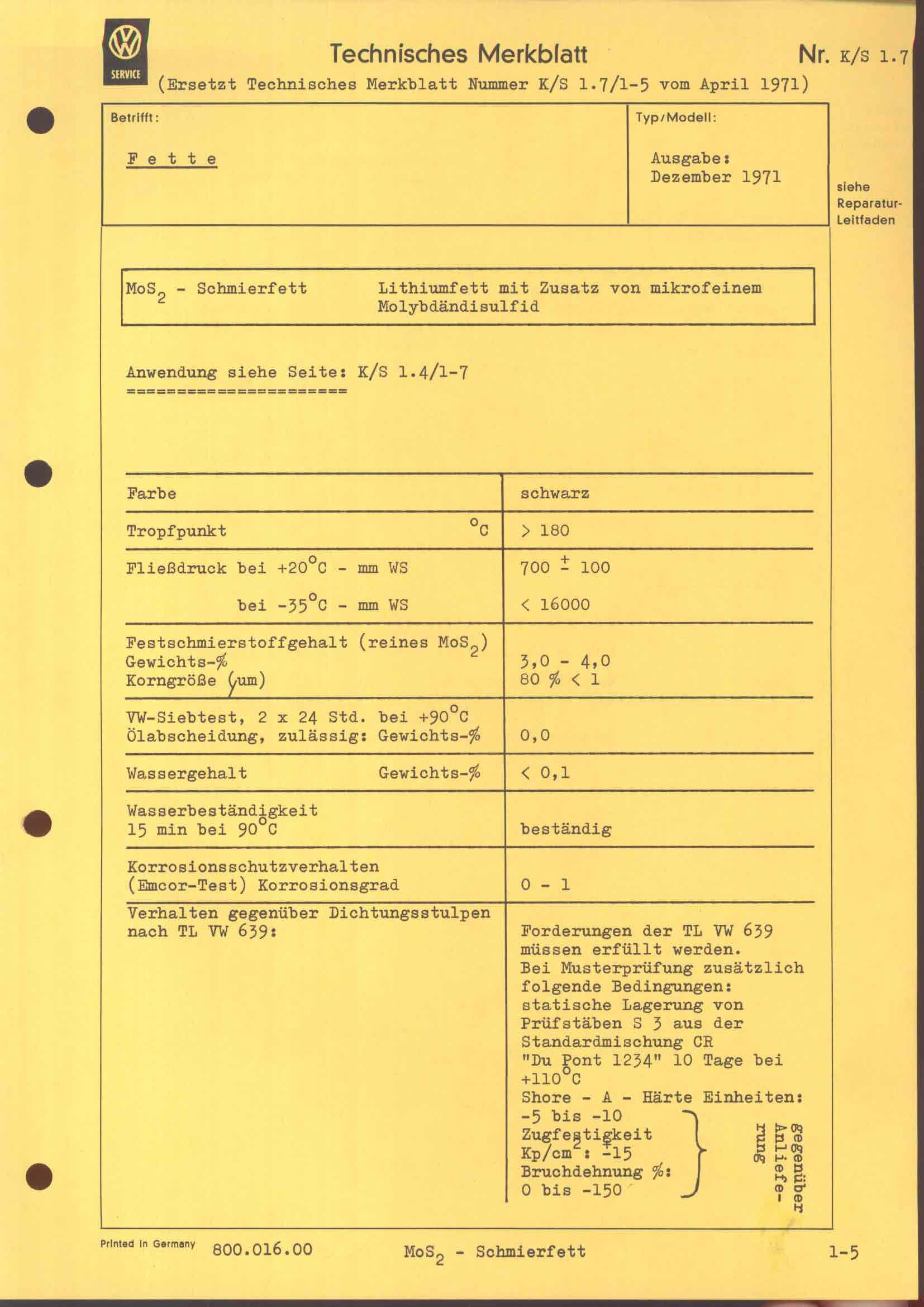 Technische Merkblätter Kraft- und Schmierstoffe, TM KS 1.7/1-5