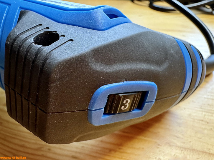 Dieses handlich und kleine, 1,9 kg schwere Winkelschleifer für 115 mm Scheibendurchmesser mit 720 W und einstellbaren 2.800–11.000 Umdrehungen pro min dient mir zum Reinigen, Entrosten und Schleifen.