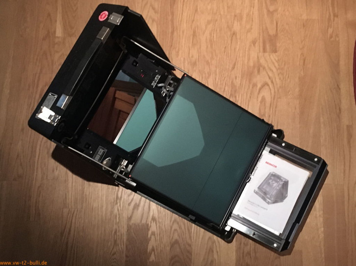 Vor den Zeiten von Computern waren viele VW Reparatur-Leitfaden und Teilekataloge auf je einem handlichen Mikrofiche, d.h. photographisch extrem verkleinert auf Mikroplanfilm. Um diese Lesen zu können, standen bei VW große später oft orange Sichtgeräte.