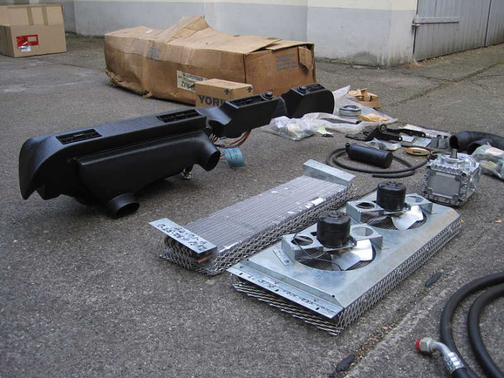 Klimaanlagen die über und vorne hinter dem Fahrer- und Beifahrersitz am Dachhimmel angebracht werden, damit auch der hintere Fahrgastraum besser von gekühlter Luft erreicht wird. Die Kühlschläuche gehen dafür in der B-Säule hinter dem Fahrer zum Dachhimmel. Die Anlage ist für Typ 4 Motoren vorgesehen.