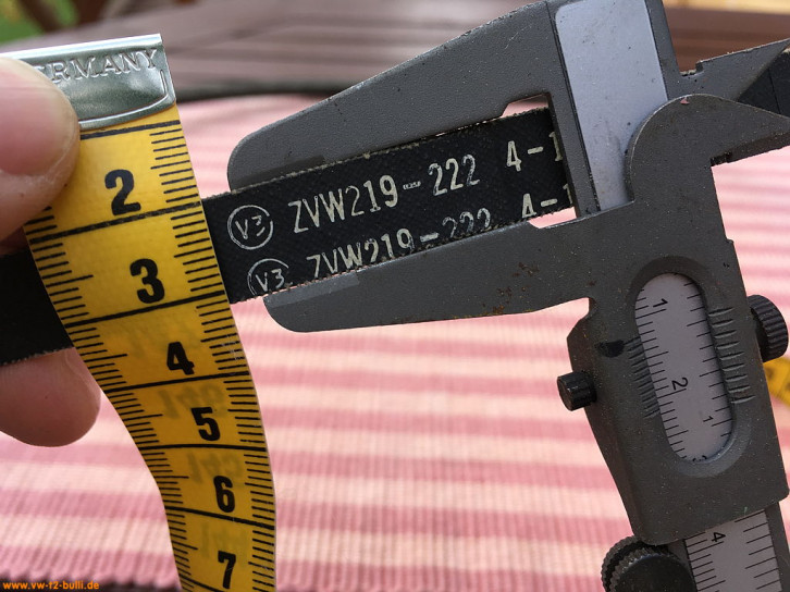 Hier noch Bilder vom Keilriemen mit Maßen, der leider schwer erhältlich ist.