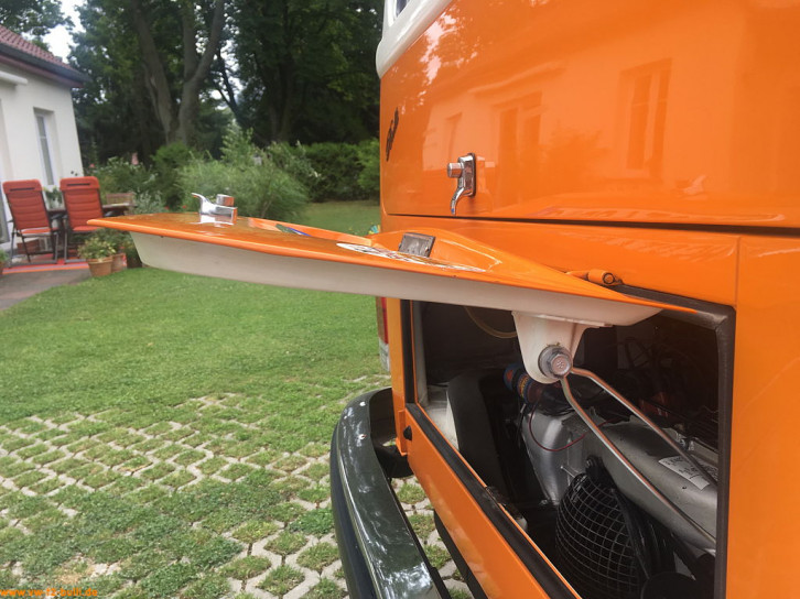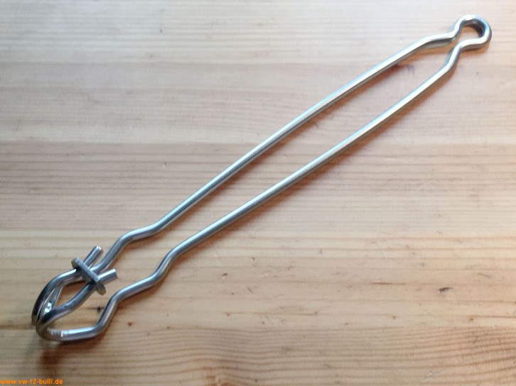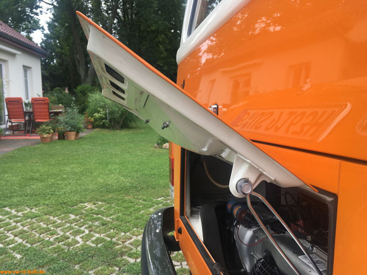 Da die Motorklappe bei beladenem Fahrradträger nicht ganz nach oben geklappt werden kann um auch dort einzurasten (um 36 Grad), gibt es bei www.werk-4.com auch eine abgeänderte Motorklappenfeder mit einer zusätzlichen Zwischenrastung (um 12 Grad). Damit bleibt die Motorklappe auch mit Fahrradträger offen.