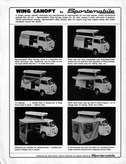 Prospekt und Beschreibung eines ausklappbaren Vorzelts.