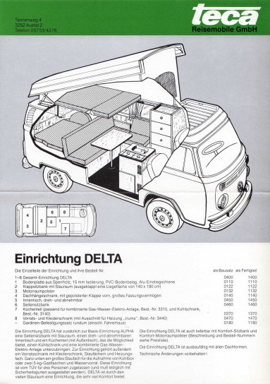 TECA VW T2 Datenblatt der Ausrüstungsvariante DELTA.