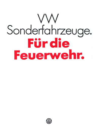 VW Feuerwehr Prospekt mit Beschreibung und Ausstattungen und Photos für VW 1200 (Käfer), Golf, Passat, Passat Variant, VW Kombi (T2).