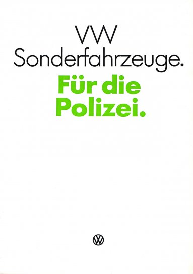 VW Polizei Prospekt mit Beschreibung und Ausstattungen und Photos für VW 1200 (Käfer), Golf, Passat, Passat Variant, VW Kombi (T2).