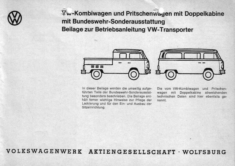 Bedienungsanleitung der Bundeswehr für Pritsche, Doppelkabine und Bus.