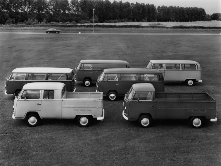 "Drei Jahrzehnte Transporter-Entwicklung im Volkswagenwerk. Mit dem Typ 2 auf Käfer-Basis fing es 1949 an. Bis 1967 liefen 1,7 Mio. Exemplare der verschiedenen Baumuster von