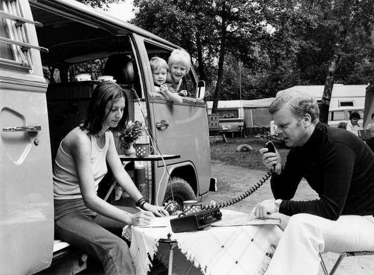 Diese Campingbus-Familie hat ein CB-Funkgerät an Bord, mit dem sie, wo immer sie unterwegs Station macht, den Kontakt zur Umwelt herstellt. Es sei erstaunlich, so hörten wir, wie hilfsbereit die Menschen seien, wenn man sie drahtlos anspricht. Der Äther sei voll mit gefälligen Gesprächspartnern, die man nach dem rechten Weg, über Land und Leute und nach den Sehenswürdigkeiten der Gegend befragen könne. Aber auch die allgemeine Unterhaltung habe ihren Reiz, lerne man doch auf diese Weise Meinungen und Dialekte kennen, das ganze überlagert vom kameradschaftlichen Band der gleichen Wellenlänge, dem Citizen-Band. Und scharfsichtige Beobachter fügen hinzu, daß selbst Menschen, die sich längst nichts mehr zu sagen haben, wieder ganz redselig werden, gibt man ihnen nur einen CB-Funk in die Hand.