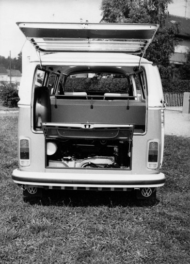 "Der Wohnmobilausbau des Transporters aus dem Jahr 1973 hatte ein Aufstelldach, einen Frischwassertank, fest eingebaute Schränke und weitere Komfort-Merkmale, die Reise- und Wohnmobile auf der Basis eines Volkswagen bis heute auszeichnen.