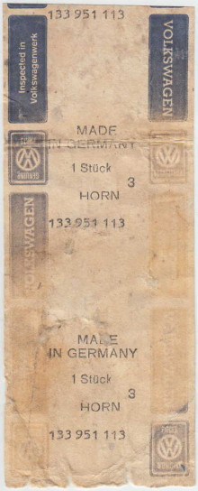 Seltenes Zubehör-Set aufgeschnappt in den USA von Volkswagen "City Horn" Bestellnummer "133 951 113".