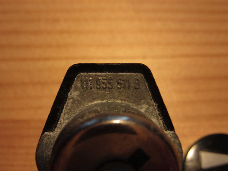 Die beiliegende Schalter ist identisch dem Zugschalter für die Innenraumbeleuchtung mit VW Teilenummer 111 955 511 B.Er stammt trotz VW Zeichen nicht wie üblich von Hella - sondern trägt ein MW-Firmenzeichen der Firma Merit-Werk Merten GmbH & Co KG, Gummersbach (der automotive Schalterbau wurde erst stückweise nach Malta verlegt und dann als MERIT Malta 1997 an Methode Electronics Ltd verkauft). Auch der Knopf stammt nicht von Hella sondern von der auch bekannten Marke "Helphos" (aus Bad Harzburg, 1996 durch die Firmengruppe "Solvay" übernommen).