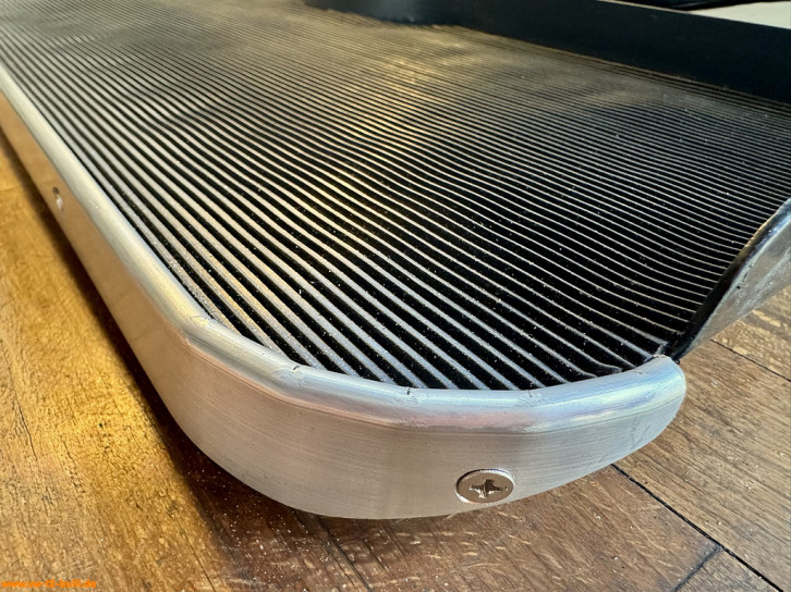 Das Trittbrett hat eine aufgeklebte geriffelte Gummimatte als rutschfeste Trittfläche. Abstand der Riffel etwa 3,3 mm.