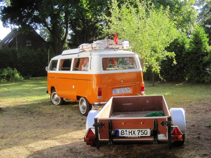 Seit Juni 2013 haben wir einen Timme HP750 Anhänger Baujahr 2001, um auch für größere Transportaufgaben bereit zu sein... Durch die Holzplatten passt er ganz gut noch zum Thema Oldtimer.