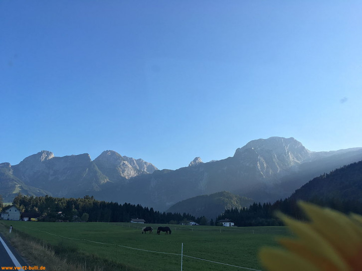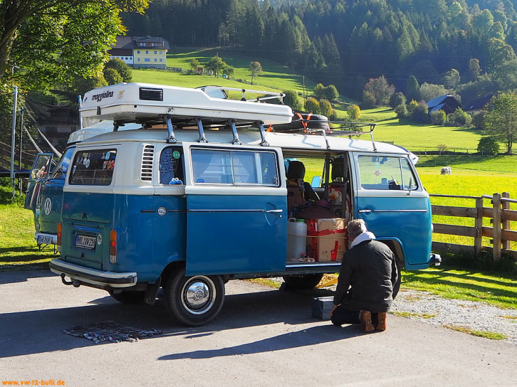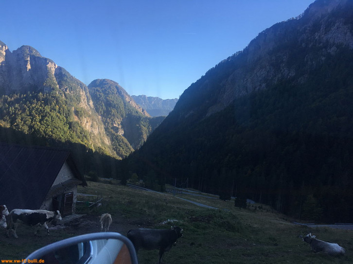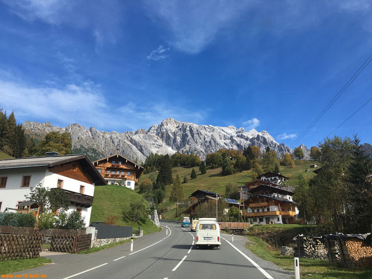 Von Berlin ging es mit andern Berlinern über Landstraßen zum Treffen mit den anderen "Goldenen Oktober" Teilnehmern nach Bad Reichenhall nahe der Grenze Österreichs. Dort erhielten wir das Roadbook für die Woche "Der Goldener Oktober 2018, mit dem VW Bus in den Karst".